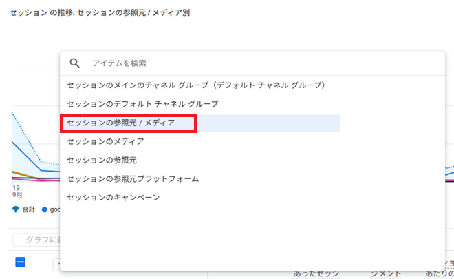 プルダウンより「セッションの参照元/メディア」を選択します。