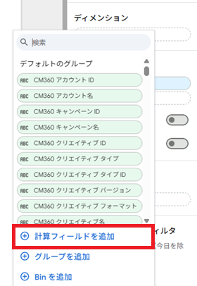 3.表示名に任意の名前を付けて、「数式」に下記を入力し、「適用」を押します。