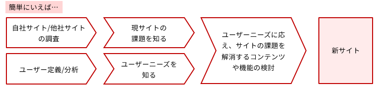 簡単に言えば、調査して→理解・把握して→足りないものを補って→新サイトを公開する という流れです。